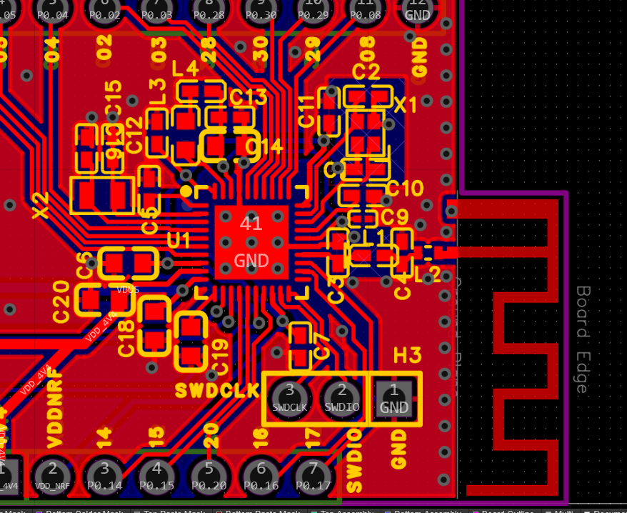A custom prototyping board for low energy/energy harvesting, wireless/IOT devices based on the nRF52820 microcontroller and BQ25505 IC.